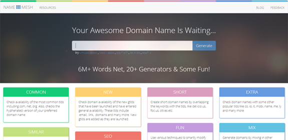 Name mesh is our personal favorite when it comes to finding a domain name. You just have to put two or three names in the search box and the site will generate a domain name from over 6 million words!